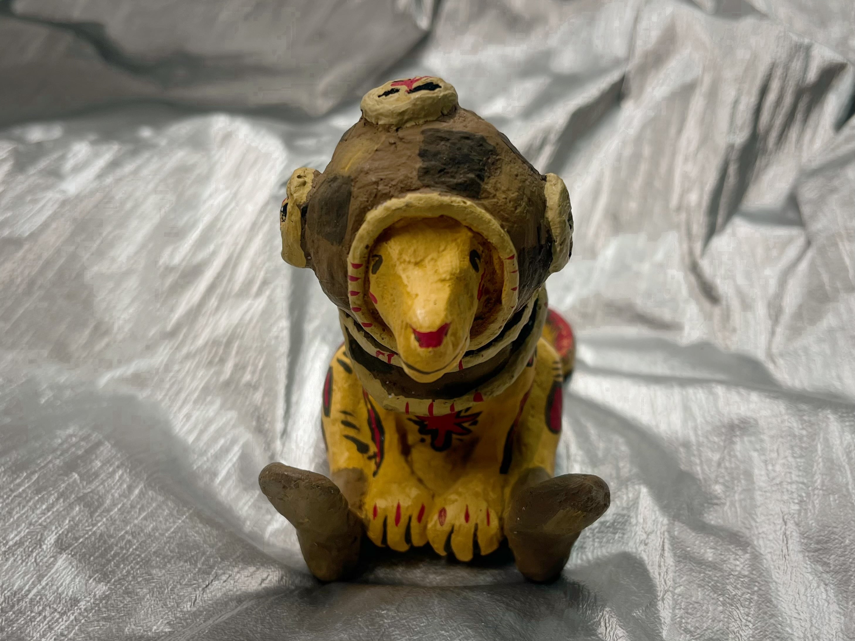 潜水士のヘルメットを被った恐竜のこどもです。